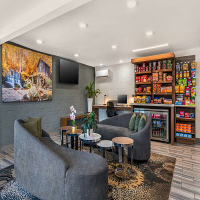 Although conveniently located near local attractions, the hotel is set on a quiet lot and offers select rooms with at-door parking. Public spaces are modest in size, but the well-appointed guest rooms are generously sized and feature large desks, decorative wall art, upgraded bedding, and 49-inch TVs. A covered BBQ area and EV chargers are available at the rear of the property. Interior and Exterior Corridors, 3 Stories, Smoke Free, 99 Units