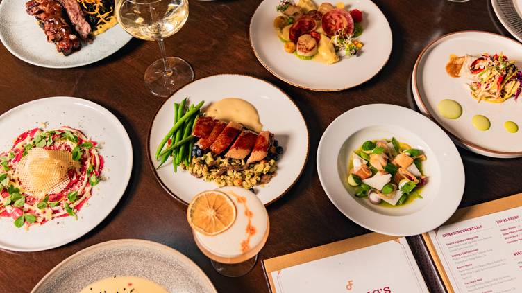 Not your common hotel restaurant experience, this eatery artfully combines global and regional ingredients to provide a menu of inspired cuisine that highlights the area's culinary treasures. Menus change weekly, but you can find items like lobster tacos, BBQ Gulf oysters, maple-soaked buffalo tenderloin, and vegan roasted cauliflower curry. Everything is as you would expect in a world-class establishment, with an engaging and unpretentious staff. Business casual attire recommended.